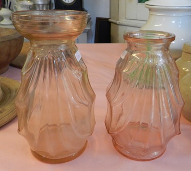 Skønne gamle vaser i presset glas, den til venstre er en hospitalsvase.