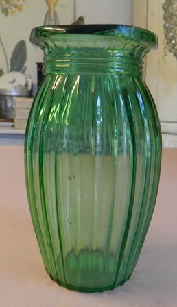 Små blomster vaser, Holmegaard glasværk ca. 1939. Hospitalsvaser af presset glas. Bemærk den skønne farve.