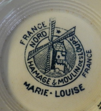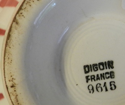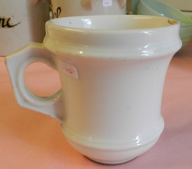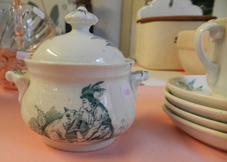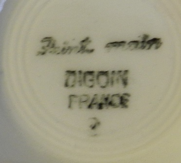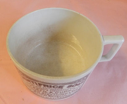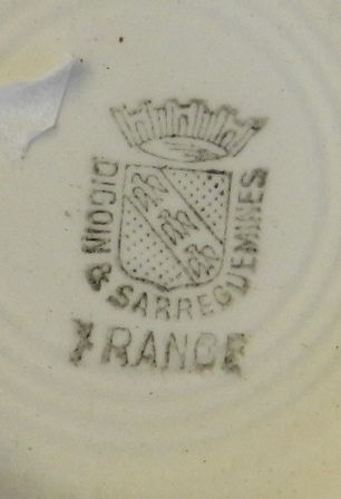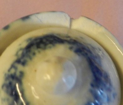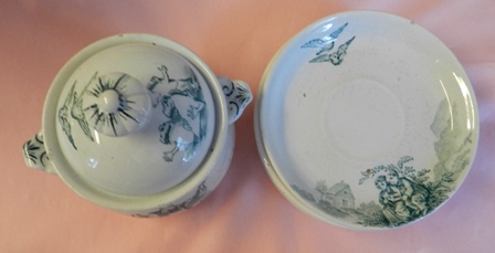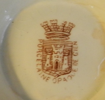 Så er der egoist te og så kan man brygge i den samme kop og lægge låg på. Fra franske Sarreguemines. Bemærk det lille skår på låget.
