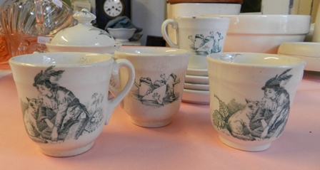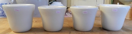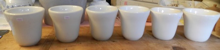 Gamle franske nonnekopper, efter sigende er de blev brugt til Cognac og de er købt i Cognac, så jo jo der er plads til en god stor Cognag. Jernporcelæn.