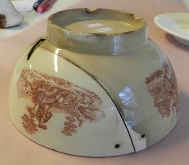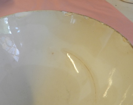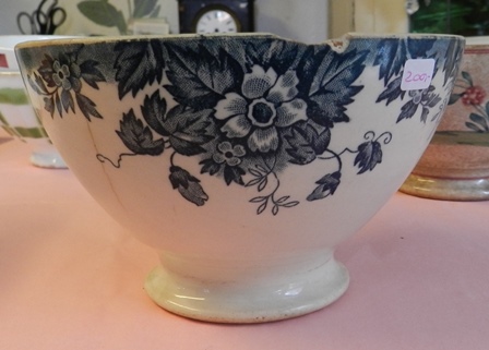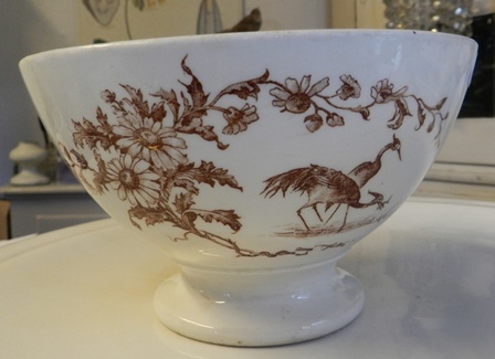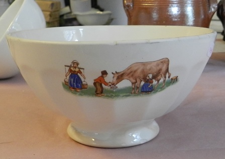 Super flot stor gammel skål, samme form som en bol, blot i stor størrelse, fra franske sarreguemines.