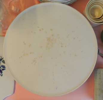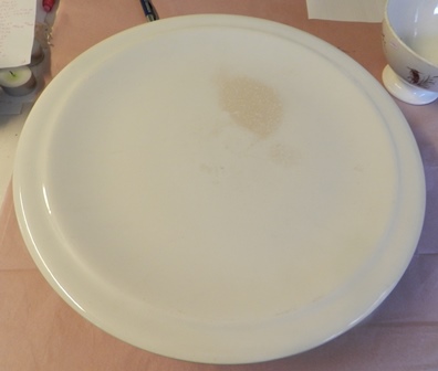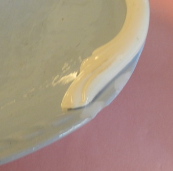 Piv lækkert gammelt fad, har et afslag på undersiden/foden.