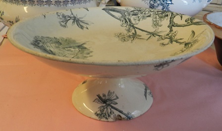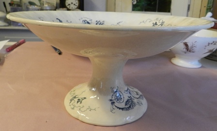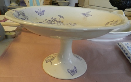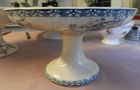 Smukkeste antikke kagefad med blåt mønster og pipfugle.