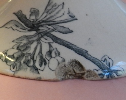 Så piv lækkert fransk antikt charcuteri fad, har fået lidt knups fra mange års brug.