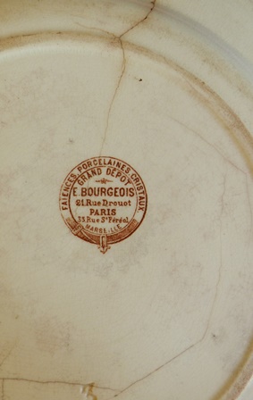 Denne må kaldes antik, sjældent kan kan sige præcist årstal, hi hi. Fineste gamle fransk fad.