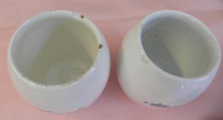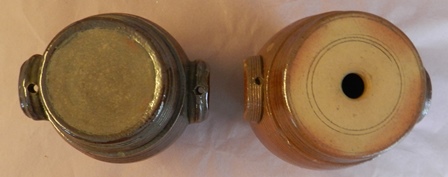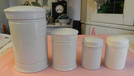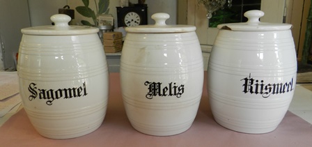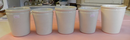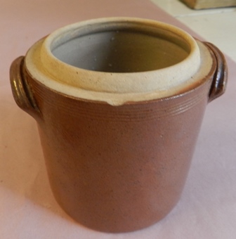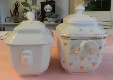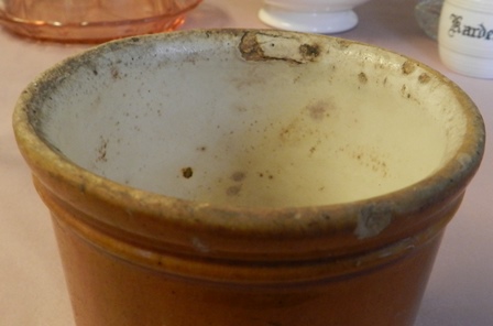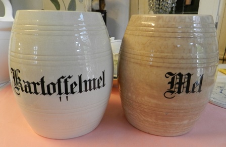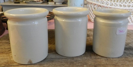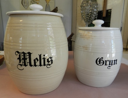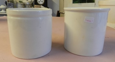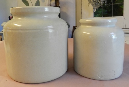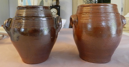 En er for lille og en er for stor eller også er de lige til pas, hvem ved? Lækre gamle franske sennepskrukker.