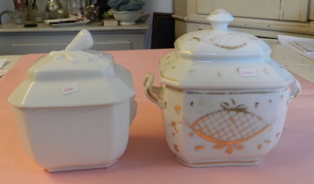 Det er lidt sjovt som man nogle gange finder noget man ikke har set før og så pludselig finder man flere. Har lige nu 3 ar disse pragtfulde antikke sovsekander fra Aluminia.