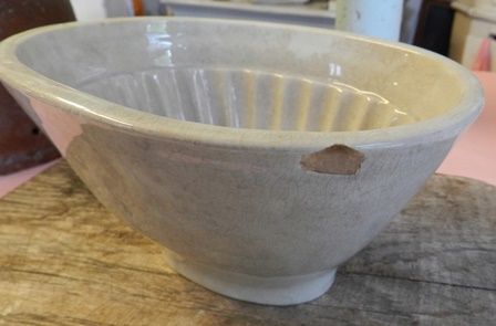 Så smuk antik porcelænsform, med den fineste patina og et lille nag. Den er en mindre størrelse.