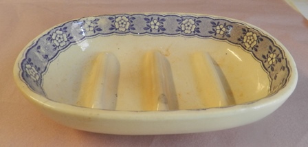Tres fransk og lækker antik sæbeskål/tandbørsteskål. Så fed patina.