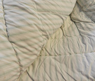 Lækkert gammelt vattæppe, med et meget lille hul, men det er der.
