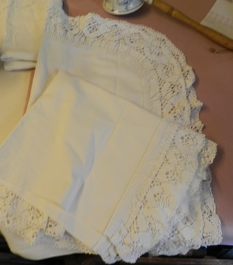 Så fine gamle franske babybluser med små blonder på ærmerne og kraven.